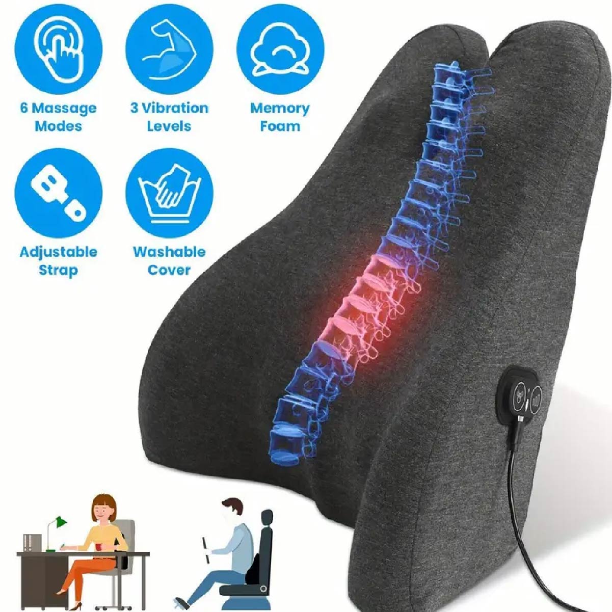 Ergonomic Memory Foam Lumbar Support Pillow with Heat & Vibration Massage